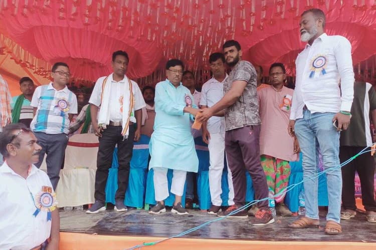 महेशपुर. प्रखंड क्षेत्र के रोलाग्राम पंचायत अंतर्गत फूलो झानो क्लब घाटचोरा की ओर से बीते शनिवार को चार दिवसीय फुटबॉल खेल का फाइनल मैच खेला गया. इसमें कुल 32 टीमों के बीच मुकाबला हुआ. फाइनल मैच का शुभारंभ मुख्य अतिथि के रूप में महेशपुर विधायक प्रो स्टीफन मरांडी द्वारा फुटबॉल में किक मारकर किया गया. खेल कमेटी के अध्यक्ष नरेश बास्की ने जानकारी देते हुए बताया कि फूलो झानो क्लब घाटचोरा की ओर से चार दिवसीय फुटबॉल खेल का आयोजन किया गया. फुटबॉल खेल का फाइनल मैच बाड़घुटु और बागानपाड़ा की टीम के बीच हुआ. इसमें बाड़घुटु की टीम को बागानपाड़ा की टीम ने दो गोल से पराजित कर ख़िताब अपने नाम कर लिया. वहीं इस प्रतियोगिता में विजेता टीम को 50 हजार रुपये व उपविजेता टीम को 40 हजार रुपये नगद देकर मुख्य अतिथियों के हाथों सम्मानित किया गया. साथ ही फुटबॉल खेल की महिला टीम शान्तिनगर और चम्पागड़ के बीच हुआ. इसमें शान्तिनगर की टीम ने चम्पागड़ को एक गोल से पराजित किया. वहीं विजेता टीम को 10 हजार रुपये एवं उपविजेता टीम को 5 हजार रुपये नगद देकर पुरस्कृत किया गया. इस अवसर पर कुश्ती प्रतियोगिता का भी आयोजन किया गया. फाइनल मैच बबन यादव एवं सुशील हांसदा के बीच मुकाबला हुआ. बबन यादव ने सुशील हांसदा को पछाड़ कर जीत दर्ज किया. वहीं मुख्य अतिथियों के हाथों विजेता को 30 हजार रुपये एवं उपविजेता को 25 हजार रुपये नगद देकर पुरस्कृत किया गया. मौक़े पर महेशपुर विधायक प्रो स्टीफन मरांडी ने अपने संबोधन में खिलाड़ियों से कहा कि वे खेल को खेल भावना से खेलें. ऐसी प्रतियोगिता से गांव के युवकों को आगे बढ़ने का मौका मिलता है. मौके पर सांसद प्रतिनिधि कुणाल अल्फ्रेड हेंब्रम, झामुमो के प्रखंड अध्यक्ष अनारुद्दीन मियां, प्रखंड उपाध्यक्ष रुहुल अमीन, जेम्स सुशील हेंब्रम, प्रखंड प्रवक्ता इक़बाल हुसैन, युवा मोर्चा अध्यक्ष जोगेंद्र मुर्मू, गोलक सिंह, मुबारक करीम, बाबू हेंब्रम, जमीन हेंब्रम, किरण मुर्मू, महेश मुर्मू सहित सैकड़ों की संख्या में खेलप्रेमी मौजूद थे.