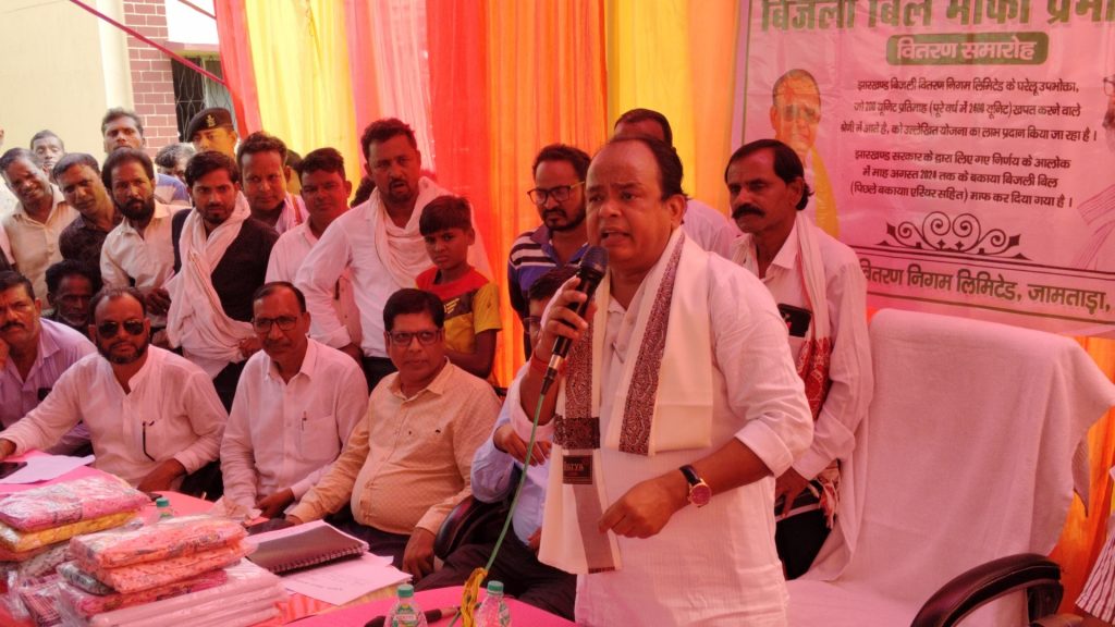 नारायणपुर. प्रखंड परिसर में सोमवार को बिजली बिल माफी प्रमाण-पत्र वितरण कार्यक्रम का आयोजन किया गया. बतौर मुख्य अतिथि ग्रामीण विकास मंत्री डॉ इरफान अंसारी मौजूद थे. कार्यक्रम में क्षेत्र के दर्जनों लोगों को बिजली बिल माफी का प्रमाण-पत्र दिया गया. इससे पूर्व कार्यक्रम का शुभारंभ मंत्री डॉ इरफान अंसारी, प्रमुख अंजना हेंब्रम, बीडीओ मुरली यादव, सीओ देवराज गुप्ता आदि ने संयुक्त रूप से किया. मंत्री इरफान अंसारी ने कहा हमारी सरकार जनता के लिए निरंतर काम कर रही है. ग्रामीण क्षेत्र के लोगों का बिजली बिल बहुत बकाया रह गया था, जिस कारण लोग परेशान थे. लोगों के घरों से बिजली काटी जा रही थी. लोग गाय बैल बेचकर बिजली बिल चुकता कर रहे थे. इस समस्या को मैंने मुख्यमंत्री के समक्ष गंभीरता पूर्वक रखा. पूरे राज्य में बिजली बिल माफी योजना चलाई गयी. इससे कई परिवारों को लाभ मिला. वहीं जब मंत्री इरफान अंसारी संबोधित कर रहे थे इस दौरान बिजली व्यवस्था की पोल खुल गयी. दरअसल माइक पर मंत्री इरफान अंसारी बिजली व्यवस्था पर बोल रहे थे. इसी दौरान बिजली गुल हो गयी. सामने बैठे बिजली विभाग के कार्यपालक अभियंता पर मंत्री इरफान अंसारी ने नाराजगी जाहिर की. लगभग पांच मिनट तक मंत्री बिना माइक के बोलते रहे. फिर पावर ग्रिड को यह सूचना दी गयी कि मंत्री जी का कार्यक्रम चल रहा है, तब जाकर बिजली बहाल की गयी. मंत्री ने कहा कि भाजपा वाले गोगो दीदी योजना के नाम पर लोगों को पैसे देने की बात कर रही हैं. घर-घर लैपटॉप का डाटा एकत्रित कर रही है. क्या लैपटॉप से ही पैसा जाता है क्या?. योजना धरातल पर लानी पड़ती है तब जाकर सार्थक होता है. भाजपा के लोग गरीबों का मजाक उड़ा रहे हैं. भाजपा के लोगों को गांव से खदेड़ कर बाहर भगा दें. कार्यक्रम के दौरान धोती, साड़ी व लूंगी का वितरण किया गया. – मंत्री कोष रहे थे भाजपा को, ठहाका लगा रहे थे सीओ डॉ मंत्री इरफान अंसारी विभिन्न मुद्दों पर भाजपा को कोष रहे थे. इसी दौरान नवपदस्थापित सीओ देवराज गुप्ता जोर जोर से ठहाका लगाकर हंस रहे थे. अधिकारी के इस व्यवहार से लोगों के बीच चर्चा का विषय बना रहा. मौके पर सरफुद्दीन अंसारी, तरणी पोद्दार, कासिम अंसारी, मनोज रजक, मोहम्मद अजहरूद्दीन, बीरबल अंसारी, दलगोविंद रजक आदि मौजूद थे.