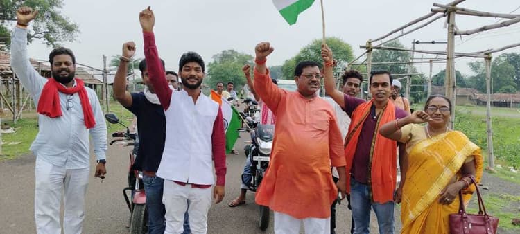 पाकुड़िया. हर घर तिरंगा अभियान के तहत तिरंगा यात्रा की शुरुआत महेशपुर विधानसभा में मंडल अध्यक्ष विजय भगत के नेतृत्व में की गयी. कार्यक्रम में मुख्य रूप से भाजपा नेता सह पूर्व विधायक मिस्त्री सोरेन व युवा मोर्चा जिलाध्यक्ष दीपक साहा के मौजूद थे. इस अवसर पर कार्यकर्ताओं ने तिरंगा हाथ में लिए पाकुड़िया हनुमान मंदिर से यात्रा की शुरुआत की, जो पूरे बाजार का भ्रमण करते हुए सिदो-कान्हू चौक तक पहुंची. मौके पर जिला महामंत्री सरिता मुर्मू, युवा मोर्चा मंडल अध्यक्ष संजीव भगत सहित कई कार्यकर्ता मौजूद थे.