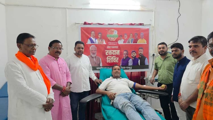 संवाददाता, पाकुड़. भाजपा कार्यकर्ताओं ने प्रधानमंत्री नरेंद्र मोदी के 75वें जन्मदिन पर सेवा पखवाड़ा अभियान शुरू किया और सादगी से उनका जन्मदिन मनाया. इस अवसर पर अटल चौक स्थित अटल बिहारी वाजपेयी की प्रतिमा की सफाई की गई, पाकुड़ ब्लड बैंक में रक्तदान शिविर आयोजित हुआ जिसमें रूपेश भगत और पार्थ रक्षित ने रक्तदान किया. सरस्वती शिशु मंदिर में “एक पेड़ मां के नाम ” कार्यक्रम के तहत वृक्षारोपण किया गया. शाम को हाटपाड़ा चौक पर खीर और विश्वनाथ भगत द्वारा वस्त्र वितरण किया गया. जिलाध्यक्ष अमृत पाण्डेय ने कहा कि कार्यकर्ताओं ने इस दिन को उत्सव के रूप में मनाया और समाज सेवा में योगदान देने का संकल्प लिया. मौके पर प्रदेश मंत्री दुर्गा मरांडी, अनुग्रहित प्रसाद साह, हिसाबी राय, शबरी पॉल, विश्वनाथ भगत, दीपक साह, विवेकानंद तिवारी, धर्मेंद्र त्रिवेदी, पवन भगत, प्राची चौधरी, निधि गुप्ता, सपन दुबे, पंकज साह सहित दर्जनों कार्यकर्ता उपस्थित थे.