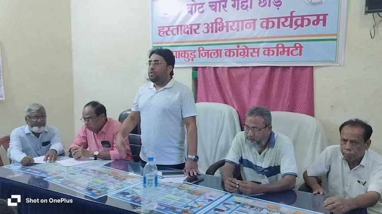 संवाददाता, पाकुड़. कांग्रेस के प्रदेश महासचिव तनवीर आलम मंगलवार को कांग्रेस कार्यालय पहुंचे. उन्होंने कार्यालय में जिला कांग्रेस कमेटी के कार्यकर्ताओं के साथ बैठक की. अध्यक्षता जिला कांग्रेस अध्यक्ष श्रीकुमार सरकार ने की. बैठक में “वोट चोरी हस्ताक्षर अभियान” की प्रगति की समीक्षा की गयी, जिन पंचायत समितियों ने अब तक हस्ताक्षर अभियान की प्रतिलिपि जमा नहीं की है, उन्हें शीघ्र ही जिला कांग्रेस कार्यालय में जमा करने का निर्देश दिया गया. इस दौरान मंडल अध्यक्षों के साथ संगठनात्मक विषयों पर भी विस्तृत चर्चा हुई. प्रदेश महासचिव ने कहा कि कांग्रेस संगठन को मजबूत करने के लिए जरूरी है कि प्रत्येक स्तर पर कार्यकर्ता सक्रिय भूमिका निभाएं. कहा कि जब भी मैं पाकुड़ का दौरा करता हूं, जनता की समस्याओं से सीधे रूबरू होता हूं. उनके समाधान के लिए निरंतर प्रयासरत रहता हूं. बैठक में उपस्थित कार्यकर्ताओं ने तनवीर आलम के नेतृत्व में कांग्रेस संगठन को और मजबूत करने का संकल्प लिया.
