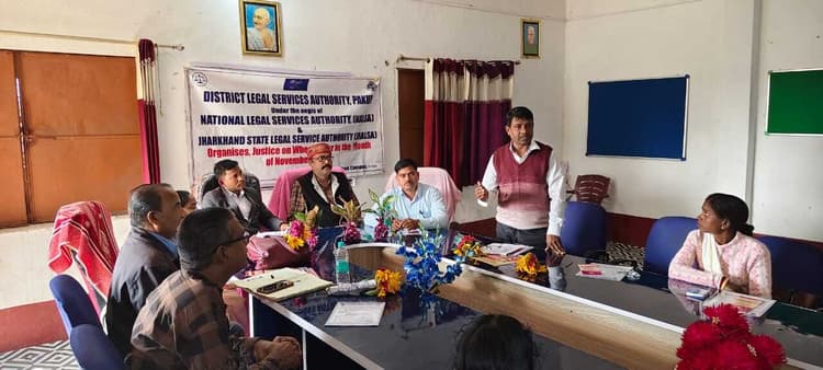 प्रतिनिधि, हिरणपुर. डालसा, पाकुड़ की ओर से शुक्रवार को हिरणपुर प्रखंड अंतर्गत तोड़ाई पंचायत भवन परिसर में ‘न्याय का पहिया’ कार्यक्रम का आयोजन किया गया. डालसा टीम ने ग्रामीणों को कानूनी अधिकारों एवं सरकारी योजनाओं के बारे में जागरूक किया. कार्यक्रम की शुरुआत तोड़ाई पंचायत की मुखिया तेरेसा टुडू ने पौधा भेंट कर की. मंच संचालन प्रखंड कार्यक्रम पदाधिकारी ट्विंकल चौधरी ने किया. कार्यक्रम में मुख्य वक्ता के रूप में उपस्थित डालसा के सदस्य सह वरिष्ठ अधिवक्ता राजीव कुमार झा ने लोगों को कानून के दायरे और महत्व से अवगत कराया. कहा कि सरकार की योजनाएं जनता को सुदृढ़ और सक्षम बनाने के लिए है. उन्होंने बाल विवाह, डायन प्रथा, मानव तस्करी जैसी सामाजिक कुरीतियों के दुष्परिणाम बताया. कहा कि इन्हें जड़ से मिटाना ही समाज विकास की दिशा में आवश्यक कदम है. उन्होंने जरूरतमंदों को निशुल्क कानूनी सहायता उपलब्ध कराने का आश्वासन भी दिया. पैनल अधिवक्ता गंगाराम टुडू ने डालसा की ओर से गरीब एवं वंचित परिवारों को दी जाने वाली निशुल्क कानूनी सहायता, परामर्श, लोक अदालत, पीड़ितों मुआवजा के बारे में जानकारी दी. वहीं बीपीओ ने सरकार की विभिन्न योजनाओं की जानकारी दी. मौके पर पीएलवी, आंगनबाड़ी सेविकाएं, सखी दीदीयां, पंचायत सचिव मीनू कुमारी, मो अनीश आदि थे.