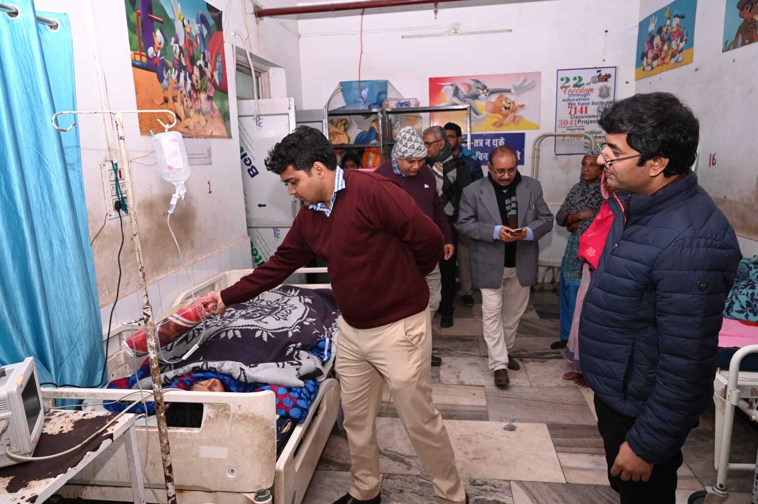 संवाददाता, पाकुड़. जिले में लगातार बढ़ रही ठंड को देखते हुए मंगलवार की देर रात डीसी मनीष कुमार ने रेलवे स्टेशन, सदर अस्पताल, सोनाजोड़ी में जरूरतमंदों के बीच कंबल का वितरण किया. रेलवे स्टेशन पर उपायुक्त ने खुले में ठंड से जूझ रहे लोगों को कंबल प्रदान किया. सदर अस्पताल में पुरुष वार्ड, महिला वार्ड एवं आईसीयू में भर्ती मरीजों के परिजनों के बीच कंबल का वितरण किया. डीसी ने कहा कि पिछले कुछ दिनों से जिले में ठंड में लगातार बढ़ोतरी हुई है. ऐसे में गरीब, असहाय एवं बीमार व्यक्तियों को ठंड से बचाना जिला प्रशासन की प्राथमिकता है. उपायुक्त ने जानकारी दी कि जिले के सभी प्रखंडों में प्रमुख चौक-चौराहों पर अलाव की समुचित व्यवस्था की गई है. उन्होंने जिलावासियों से अपील की कि ठंड में सतर्क रहें, अनावश्यकता पड़ने पर ही घर से बाहर न निकलें.