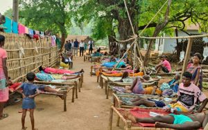 गांव में खटिया में खुले आसामान के नीचे चल रहा मरीजों का इलाज
