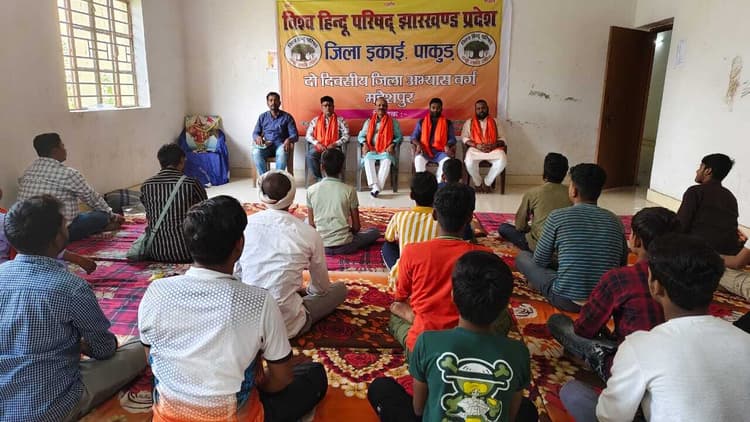 महेशपुर. प्रखंड स्थित आइटीआई भवन परिसर में विहिप पाकुड़ इकाई की ओर से बजरंग दल का आयोजित दो दिवसीय अभ्यास वर्ग शिविर का समापन सोमवार को हुआ. अभ्यास वर्ग में प्रांत सह गौरक्षा प्रमुख दीपक ठाकुर ने अभ्यास वर्ग में क्षेत्र में हो रहे लव जेहाद और लैंड जेहाद पर चिंता जाहिर की. बजरंग दल के कार्यकर्ताओं को उनके मूल मंत्र सेवा, सुरक्षा, संस्कार के दायित्व का बोध कराया. लव जेहाद जैसी घटना पर पैनी नजर रखकर सनातन समाज की रक्षा कवच बनने का आह्वान किया. प्रदेश सह मंत्री मनोज पोद्दार ने कहा कि क्षेत्र में बांग्लादेशी घुसपैठ की गतिविधियां बढ रही है, ऐसे में स्थानीय खुफिया ऐजेंसी को इसकी जानकारी दें. अंत में महेशपुर विहिप और बजरंग दल कमेटी का गठन किया गया. इसमें विश्व हिंदू परिषद के प्रखंड अध्यक्ष दिलीप लोहरा, जिला मीडिया प्रमुख रोहित यादव, प्रखंड सह मंत्री राजेन मरांडी, मंत्री विक्रम सिंह, बजरंग दल प्रखंड संयोजक अशोक यादव, नगर संयोजक विक्की राय, प्रखंड सह-संयोजक निर्मल कुमार, प्रखंड अखाडा प्रमुख अपूर्व राणा, प्रखंड मिलन केंद्र प्रमुख अभिजीत दास को बनाया गया. इसकी घोषणा प्रदेश सहमंत्री मनोज पोद्दार ने की. मौके पर विहिप जिला अध्यक्ष अशोक कुमार वर्मा, जिला संयोजक शुभम भगत, जिला मंत्री अरविंद घोष, जिला गौरक्षा प्रमुख प्रतिक तिवारी, जिला सहमंत्री विशाल कुमार, मुकेश कुमार आदि थे.