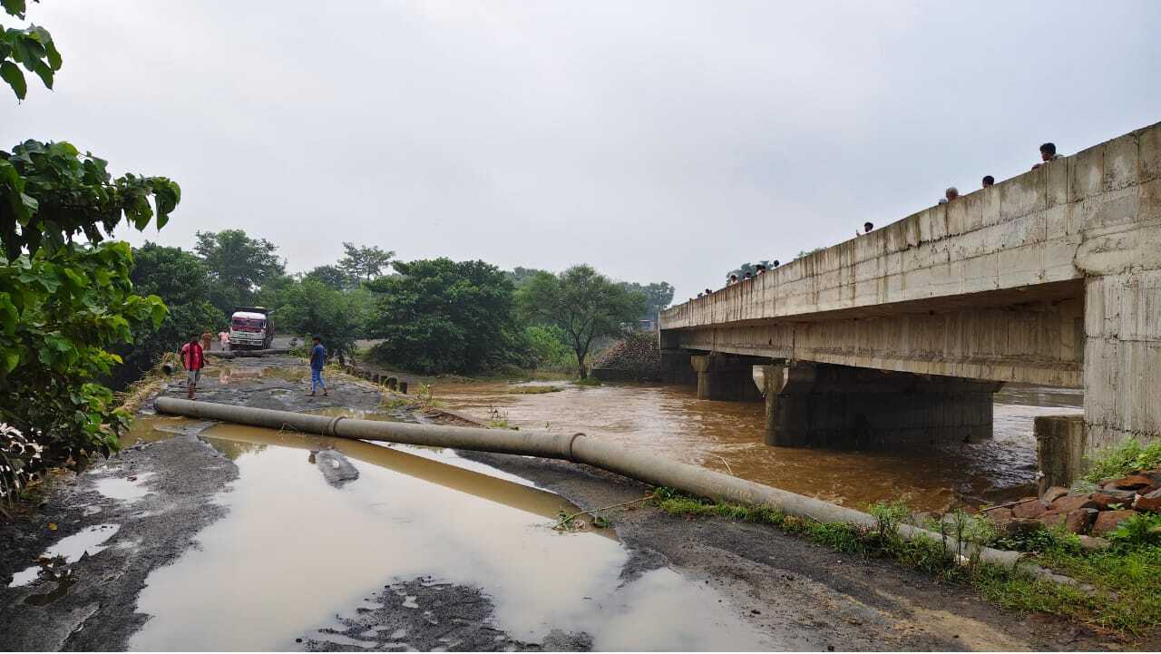 – पुराने पुल पर जल-जमाव से दुर्घटना का खतरा, नवनिर्मित पुल का कार्य अधूरा प्रतिनिधि, पाकुड़िया. प्रखंड क्षेत्र में रविवार शाम से हुई जोरदार बारिश के बाद ब्राह्मणी नदी उफान पर आ गयी. इसके चलते पाकुड़िया-खकसा मार्ग स्थित सतिघाटा तिरपीतिया पुल के ऊपर से पानी बहने लगा. इस दौरान पुल पर जलापूर्ति योजना के तहत बिछाए गए मोटे पाइप टूटकर बिखर गए, जिससे सोमवार सुबह करीब 10 बजे तक आवागमन पूरी तरह बाधित रहा. पुल के दोनों ओर वाहनों की लंबी कतार लग गयी. सूचना मिलने पर जलापूर्ति योजना के संवेदक ने जेसीबी मशीन से पाइप हटवाकर रास्ता साफ कराया, जिसके बाद यातायात बहाल हो सका. ग्रामीणों के अनुसार, अंग्रेजों के समय बना यह पुराना पुल जल-जमाव की समस्या से जूझ रहा है. पुल पर बने गड्ढों और लगातार पानी भरने से दुर्घटना का खतरा बना रहता है. लगभग दो दशक पुराने इस पुल की स्थिति ऐसी है कि हल्की बारिश में भी उस पर पानी जमा हो जाता है, जिससे संरचना जर्जर होने का खतरा है. ग्रामीणों ने बताया कि इस पुल से 24 घंटे भारी-भरकम गिट्टी लदे वाहनों सहित सभी प्रकार के छोटे-बड़े वाहन गुजरते हैं, जिससे दबाव और बढ़ जाता है. पुल के ठीक बगल में एक नया और उच्च स्तरीय पुल का निर्माण कराया जा रहा है, जिसका 90 प्रतिशत कार्य पूरा हो चुका है. हालांकि एप्रोच फिनिशिंग का काम पिछले छह माह से संवेदक की लापरवाही के कारण अधूरा पड़ा है. खकसा, ढेकिडुबा, जंटाग खकसा समेत आसपास के गांवों के ग्रामीणों ने पथ निर्माण विभाग से नवनिर्मित पुल का बचा हुआ कार्य शीघ्र पूर्ण कर जल्द से जल्द उस पर आवागमन शुरू करने की मांग की है.