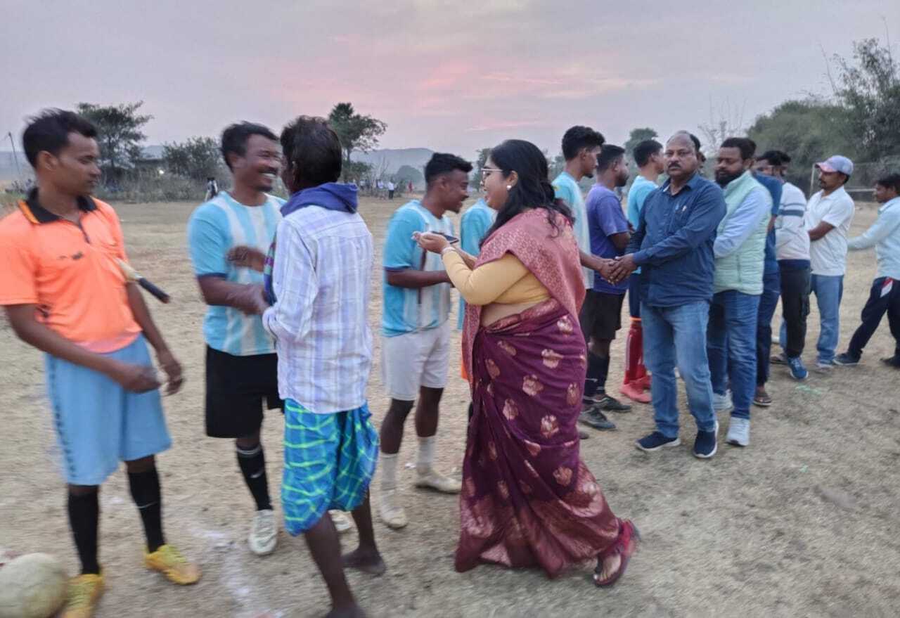 महेशपुर. प्रखंड के न्यू किसान क्लब मुर्गाडांगा द्वारा आयोजित दो दिवसीय फुटबॉल टूर्नामेंट का फाइनल एफसी मोदी स्टार व एफसी सिमलजोड़ी टीम के बीच खेला गया. इसमें एफसी मोदी स्टार ने एफसी सिमलजोड़ीको एक गोल से पराजित कर खिताब अपने नाम किया. फाइनल खेल का शुभारंभ बतौर मुख्य अतिथि झामुमो नेत्री उपासना मरांडी ने खिलाड़ियों से परिचय प्राप्त कर किया. साथ ही विजेता व उप विजेता टीम को पुरस्कार देकर सम्मानित किया.
