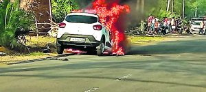 महेशपुर में चलती कार में लगी आग, धू-धू कर जली