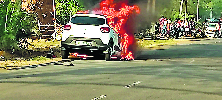 महेशपुर-पाकुड़िया मुख्य सड़क पर हाथीमारा गांव के समीप मंगलवार को एक चलती कार में अचानक आग लग गयी. इससे घटनास्थल के आसपास अफरा-तफरी मच गयी. कार में सिर्फ मालिक सह चालक ही सवार था, जो सुरक्षित निकल गया. आग लगने का कारण शार्ट सर्किट बताया जाता है.