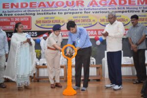 प्रोजेक्ट प्रयास के तहत एंडिवर अकादमी का तीसरा बैच शुरू द्वितीय बैच के छात्रों को दी गयी विदाई नगर प्रतिनिधि, पाकुड़ पाकुड़ जिला प्रशासन और बीजीआर माइनिंग एंड इंफ्रा लिमिटेड ने संयुक्त रूप से बुधवार को रवींद्र भवन टाउन हॉल में “प्रोजेक्ट प्रयास तैयारी जीत की ” के तहत एंडिवर अकादमी के 2025-26 सत्र के तृतीय बैच का शुभारंभ किया और 2024-25 सत्र के द्वितीय बैच के छात्रों को विदाई दी. उपायुक्त मनीष कुमार, जिला शिक्षा अधीक्षक अनिता पुरती, एसपी निधि द्विवेदी और पचुवाड़ा नॉर्थ कोल माइंस के उप महाप्रबंधक वेनकटा नारायणा ने दीप प्रज्वलित कर कार्यक्रम का उद्घाटन किया. उपायुक्त ने बताया कि एंडिवर अकादमी आर्थिक रूप से कमजोर प्रतिभावान छात्रों को मुफ्त कोचिंग और अध्ययन सामग्री प्रदान कर प्रतियोगी परीक्षाओं की तैयारी में सहायता कर रही है. उन्होंने छात्रों को मेहनत, अनुशासन और आत्मविश्वास के साथ पढ़ाई करने के लिए प्रेरित किया और कहा कि पाकुड़ के छात्र अब राज्य और देश स्तर पर सफलता प्राप्त कर जिले का नाम रोशन कर रहे हैं. एसपी ने विद्यार्थियों को सफलता के लिए लक्ष्य पर ध्यान केंद्रित करने और सकारात्मक दृष्टिकोण रखने का महत्व बताया. उन्होंने छात्रों को नियमित रूप से नोट्स बनाने और कोचिंग का अधिकतम लाभ उठाने की सलाह दी. इस अवसर पर, प्रतियोगी परीक्षाओं में सफल पूर्व छात्रों और उनके अभिभावकों को शॉल और मोमेंटो से सम्मानित किया गया. कार्यक्रम में जिला क्रीड़ा पदाधिकारी राहुल कुमार, बीजीआर कोल माइंस के पीआरओ संजय बेसरा और अन्य उपस्थित थे.