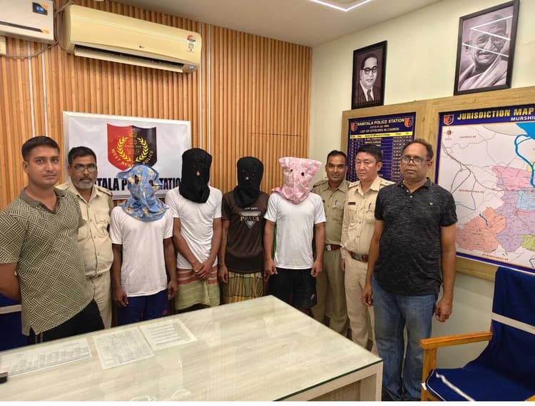 फरक्का. मुर्शिदाबाद जिले की रानीतला थाने की पुलिस ने शिवनगर घाट इलाके से चार बांग्लादेशी घुसपैठिये को गिरफ्तार किया है. थाना प्रभारी अरिजीत घोष ने बताया कि बांग्लादेशी घुसपैठियों को घूमते देखे जाने की गुप्त सूचना मिली थी. इसके बाद तलाशी अभियान शुरू किया गया. इस क्रम में थाना क्षेत्र के शिवनगर घाट के समीप बांग्लादेश के जिला राजशाही, थाना दमकरा, पोस्ट ऑफिस के हरिहरपुर गांव बेरपारा निवासी अलामीन शेख (29), सब्बीर हुसैन (21), मामन अली (19) एवं मोहम्मद विप्लव (27) को हिरासत में लिया गया. बुधवार को लालबाग न्यायालय में पेशी के बाद चारों को 5 दिनों की रिमांड पर लिया गया है. अब आगे इन घुसपैठियों से गहन पूछताछ की जायेगी.