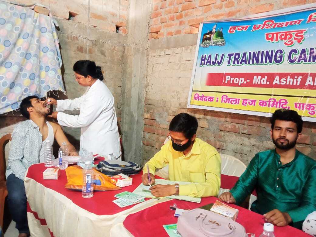 संवाददाता, पाकुड़. झारखंड हज कमेटी के निर्देश पर जिला हज व्यवस्थापक की ओर से गुरुवार को हरिन डांगा मंसूरी टोला स्थित मदरसा गौशियाँ आश्रफिया दारुल उलूम में जिला से जाने वाले हज यात्रियों के लिए टीकाकरण सह प्रशिक्षण शिविर लगाया गया था, लेकिन रांची हज कमेटी की ओर से कोई प्रशिक्षक के शिविर में नहीं पहुंचने से हज यात्रियों में काफी मायूसी देखी गई. हालांकि स्वास्थ्य विभाग की ओर से हज यात्रियों का टीकाकरण किया गया. डॉ शब्बीर अहमद और डॉ गुफरान अली की निगरानी में एएनएम रोशा अरीश तिग्गा और मुमताज खातून ने हज यात्रियों का टीकाकरण किया. मालूम हो कि इस साल पाकुड़ जिला से 10 हज यात्री रवाना होंगे.