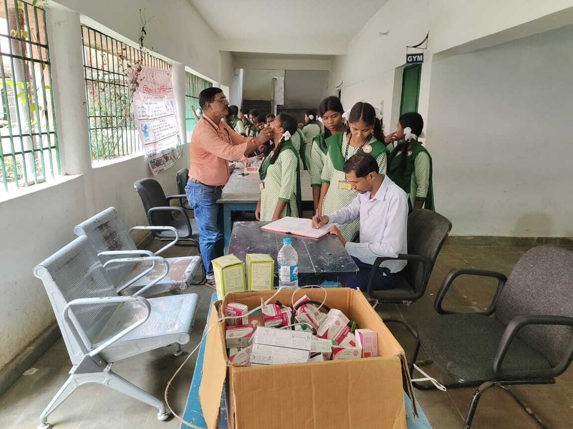 पाकुड़. कस्तूरबा बालिका उच्च विद्यालय अमड़ापाड़ा में शुक्रवार को एनीमियामुक्त भारत अभियान के तहत स्वास्थ्य जांच और टीकाकरण कार्यक्रम का आयोजन किया गया. कार्यक्रम का संचालन सामुदायिक स्वास्थ्य केंद्र फतेहपुर के आरबीएसके (राष्ट्रीय बाल स्वास्थ्य कार्यक्रम) टीम के चिकित्सक डॉ प्रमोद कुमार ने किया. इस दौरान विद्यालय की लगभग 80 छात्राओं का स्वास्थ्य परीक्षण किया गया. जांच में जिन छात्राओं में आवश्यक पोषक तत्वों की कमी या अन्य स्वास्थ्य संबंधी परेशानी पायी गयी, उन्हें मौके पर ही आवश्यक दवाएं उपलब्ध करायी गयी. साथ ही 10 वर्ष और 16 वर्ष आयु वर्ग की छात्राओं को टिटनेस का टीका लगाया गया ताकि संक्रमण से बचाव सुनिश्चित किया जा सके. चिकित्सक दल ने छात्राओं को एनीमिया के कारण, लक्षण और बचाव के उपायों के बारे में विस्तार से जानकारी दी. उन्होंने बताया कि संतुलित आहार, हरी पत्तेदार सब्जियां, दालें और आयरन युक्त भोजन नियमित रूप से लेने से एनीमिया की समस्या से बचा जा सकता है. मौके पर सामुदायिक स्वास्थ्य केंद्र के डॉ. सरफराज भी मौजूद रहे. विद्यालय प्रबंधन ने इस पहल के लिए स्वास्थ्य विभाग का आभार जताया और उम्मीद जतायी कि ऐसे कार्यक्रम नियमित रूप से आयोजित होंगे, जिससे छात्राओं का स्वास्थ्य बेहतर रहेगा.