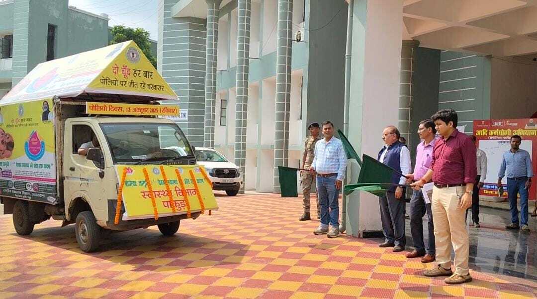 नगर प्रतिनिधि, पाकुड़. जिले में 12 से 14 अक्तूबर तक पल्स पोलियो अभियान चलाया जाना है. मंगलवार को जागरुकता रथ को हरी झंडी दिखाकर समाहरणालय परिसर से रवाना किया गया. उपायुक्त मनीष कुमार, निदेशक आइटीडीए अरुण कुमार एक्का व सिविल सर्जन डॉ सुरेन्द्र कुमार मिश्रा ने संयुक्त रूप से रथ को रवाना किया. इस अवसर पर उपायुक्त मनीष कुमार ने कहा कि पल्स पोलियो अभियान का उद्देश्य शून्य से पांच वर्ष तक के बच्चों को पोलियो की खुराक पिलाना है. स्वास्थ्यकर्मी घर-घर जाकर बच्चों को पोलियो की खुराक पिलाएंगे. कहा कि जागरुकता रथ सभी पंचायत, गांव और मोहल्ले में भ्रमण करेगा. लोगों को पोलियो उन्मूलन का संदेश देगा. उपायुक्त ने कहा कि पोलियो मुक्त समाज निर्माण में जनसहभागिता महत्वपूर्ण है. कहा कि सामूहिक प्रयास से ही पोलियो उन्मूलन का लक्ष्य हासिल किया जा सकता है.