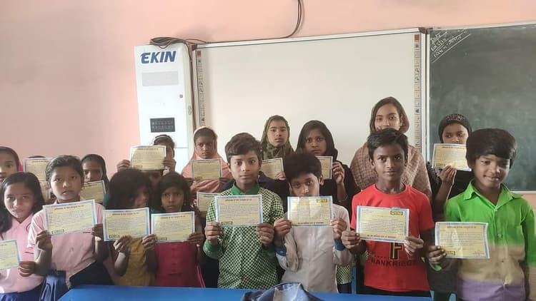 पाकुड़ नगर. सदर प्रखंड के उत्क्रमित मध्य विद्यालय हरिगंज में बच्चों के बीच उपायुक्त की ओर से प्रेषित आमंत्रण पत्र का वितरण किया गया. प्रभारी प्रधानाध्यापक दिलीप कुमार राय ने बताया कि जिला स्वीप कोषांग की देखरेख में मतदाता जागरुकता को लेकर कार्यक्रमों को चलाया जा रहा है. जिला निर्वाचन पदाधिकारी ने अभिभावकों के नाम उपायुक्त ने पत्र भेजा है. इसमें एक जून को सभी मतदाताओं को अपने मतदान केंद्र पहुंचकर सुबह सात बजे से शाम पांच बजे तक मतदान करने की अपील की गयी है, जिसका वितरण छात्रों के बीच किया गया है. ताकि अधिक से अधिक अभिभावक जागरूक होकर चुनाव प्रक्रिया में शामिल हो सकें.