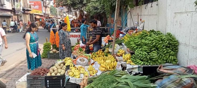 छठ पर्व के दूसरे दिन बाजारों में भीड़ देखी गयी. श्रद्धालु पूजन सामग्री खरीदते देखे गए. फलों से लेकर फूलों तक के कीमतों में इजाफा देखा गया, जहां गेंदा फूल का माला पांच रुपए प्रति लड़ी बिकती थी वहीं 20 रुपए प्रति लड़ी बिक्री हुई. गन्ने की भी 30 से 40 प्रति पीस की बिक्री हुई. कपड़ों से लेकर फल, सूप दउरा व पीतल के बर्तनों की भी खूब बिक्री हुई. दुकानदारों ने बताया कि हर साल छठ करने वाली व्रतियों की संख्या बढ़ जाती है. कुछ लोग दूसरे व्रतियों से अपना छठ कराते हैं, इसके लिए भी वह सामान की खरीदारी करते हैं. इस कारण बाजार में रौनक देखने को मिल रही है. छठ का प्रसाद बनाने के लिए आटा, मैदा, रिफाइन व घी की भी बिक्री हुई है. फल विक्रेता की माने तो छठ पर्व के दूसरे दिन खरना पर लोगों ने पूजन सामग्री की खरीदारी की है. महंगाई का भी असर लोगों में देखा गया. इस बार पहले वर्ष की अपेक्षा 5 से 10 रुपये की वृद्धि पूजन सामग्री में हुई है.फलों के कीमतों पर एक नजर