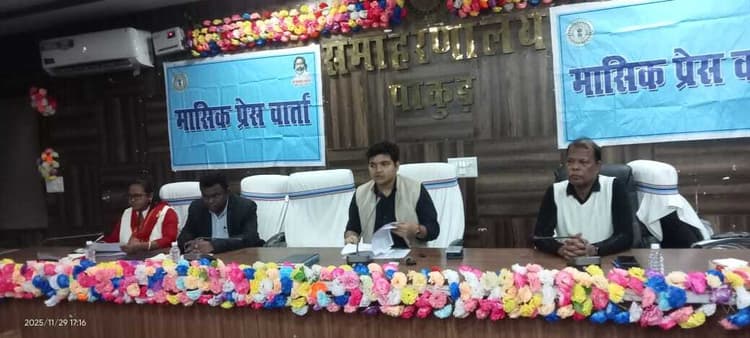 प्रेस कांन्फ्रेंस. डीसी ने जिले की गतिविधियों को दी जानकारी, कहा सरकार आपके द्वार कार्यक्रम में 31930 प्राप्त हुए आवेदन, 16827 का हुआ निष्पादन प्रतिनिधि, पाकुड़. समाहरणालय में शनिवार को मासिक पत्रकार वार्ता आयोजित की गयी. इस दौरान डीसी मनीष कुमार, एसडीओ साइमन मरांडी, अपर समाहर्ता जेम्स सुरीन मौजूद थे. डीसी ने बताया कि 21 से 28 नवंबर तक सरकार आपके द्वार कार्यक्रम का आयोजन किया गया. जिले में यह कार्यक्रम सार्थक साबित हुआ है. जिलेभर में 149 कैंप लगाये गये, जिनमें विभिन्न योजनाओं से संबंधित 31930 आवेदन प्राप्त हुए. वहीं, 16827 आवेदनों का निष्पादन किया गया. कुछ आवेदन किसी कारणवश रिजेक्ट कर दिए गए हैं. वहीं 13232 आवेदन पेंडिंग है, जिसका जल्द ही निराकरण कर दिया जायेगा. बताया कि जिले में विकास कार्य को गति देने के लिए निरंतर प्रयास किया जा रहा है. नगर परिषद चुनाव एक बड़ी चुनौती है. नगर परिषद चुनाव को लेकर बहुत जल्द कोषांग का गठन किया जायेगा. वर्तमान में बालू की की समस्या हो रही है. बालू की समस्या का जल्द ही निदान कर लिया जायेगा. बताया कि अबुआ आवास निर्माण में राज्य में प्रथम स्थान पर जिला रहा. वित्तीय वर्ष 2024-25 में 5000 से अधिक आवास बनाया गया है. वही जन वितरण प्रणाली की ओर से नया राशन कार्ड का भी काम जिले भर में चल रहा है. शहरी जलापूर्ति योजना का कार्य अंतिम चरण में है. लोगों को जल्द ही इसका लाभ मिलने लगेगा. जलापूर्ति योजना के अलावा जिले भर में सभी चापाकल दुरुस्त करने को लेकर कमेटी बनाई जा रही है. स्वास्थ्य सुविधा को और भी बेहतर बनाने के लिए अस्पताल को सक्रिय रखने के लिए निर्देश दिया गया है. किसी भी परिस्थिति में लोगों को स्वास्थ्य सुविधा का लाभ मिले यह सुनिश्चित किया जाए. जिले में शांति व्यवस्था बनाए रखने के लिए एसपी निधि द्विवेदी के नेतृत्व में मनचलों पर कार्रवाई तेज कर दी गयी है. पुलिस पदाधिकारी को रात्रि में पेट्रोलिंग अभियान तेज करने का निर्देश दिया गया है. 15 दिसंबर से धान की अधिप्राप्ति होगी. उन्होंने किसानों से अपील करते हुए कहा कि अपने नजदीकी लैंप्स में ही धन को बेचें.