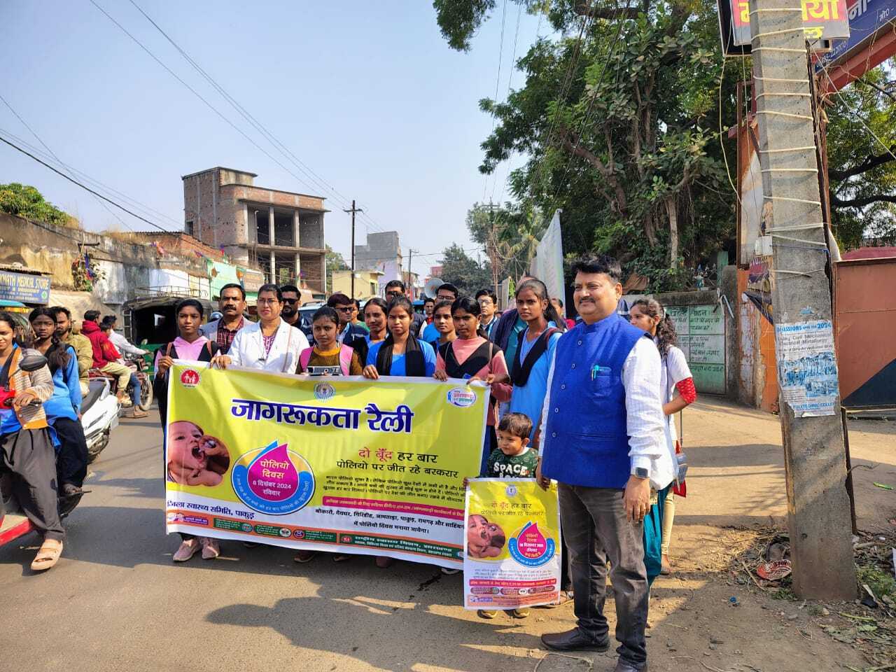 नगर प्रतिनिधि, पाकुड़ जिले में आठ दिसंबर से शुरू हो रहे पल्स पोलियो अभियान के सफल क्रियान्वयन को लेकर शनिवार को जागरुकता रैली निकाली गयी. पुराना सदर अस्पताल से जिला आरसीएच पदाधिकारी डॉ संजय कुमार झा ने हरी झंडी दिखाकर रैली रवाना की. उन्होंने बताया कि, रैली के जरिये लोगों को पोलियोरोधी खुराक शून्य से पांच साल तक के बच्चों को पिलाने के लिए प्रेरित किया जा रहा है. बताया कि, पूरे जिले में 1,89,342 बच्चों को खुराक पिलाने का लक्ष्य रखा गया है. रविवार को बूथों पर और छूटे हुए बच्चों को साेमवार व मंगलवार को घर-घर जाकर खुराक पिलायी जायेगी. शत-प्रतिशत बूथ कवरेज के लिए स्वास्थ्य विभाग द्वारा कई कार्यक्रम आयोजित किये जा रहे हैं. इसमें सहिया के माध्यम से घर-घर संदेश एवं शहरी क्षेत्र में माइकिंग के माध्यम से भी लोगों को जागरूक किया जा रहा है. मौके पर जिला यक्ष्मा पदाधिकारी डॉ. कौशल कुमार सिंह, एसआरटीएल, डब्लूएचओ डॉ. संजय कुमार सिंह, सर्विलेंस चिकित्सा पदाधिकारी डॉ. धारुन प्रसाद, जिला शहरी स्वास्थ्य प्रबंधक विनोद कुमार वर्मा, जिला डाटा मैनेजर प्रताप कुमार, लोक स्वास्थ्य प्रबंधक फहीम अख्तर सहित अन्य मौजूद थे.