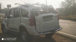 अनियंत्रित होकर स्कॉर्पियो पलटी, बाल-बाल बचे सवारी
