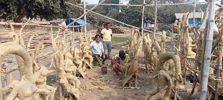 पाकुड़. जिले भर में दो फरवरी को मनाए जाने वाली सरस्वती पूजा की तैयारियां जोरों पर हैं. मूर्तिकारों ने देवी सरस्वती की प्रतिमाओं का निर्माण शुरू कर दिया है, जिसकी ऊंचाई दो फीट से लेकर छह फीट तक है. मूर्तियों की कीमत एक हजार से लेकर पांच हजार रुपये तक निर्धारित की गयी है. स्थानीय मूर्तिकार श्रद्धालुओं की अग्रिम बुकिंग को लेकर व्यस्त हैं, ताकि वे तय तिथि तक मूर्तियों को अंतिम रूप दे सकें. हालांकि, कड़ाके की ठंड और सूरज न निकलने के कारण उन्हें कुछ समस्याओं का भी सामना करना पड़ रहा है. बाजार में रेडीमेड मूर्तियों की मौजूदगी ने स्थानीय मूर्तिकारों के लिए मुश्किलें खड़ी कर दी है, जिससे उन्हें उचित मुनाफा नहीं सकेगा. मूर्तिकार जतन पाल और रतन पाल ने बताया कि पहले की तुलना में वर्तमान में मूर्तिकारों की स्थिति दयनीय हो गयी है उन्हें अब तक लगभग 60 ऑर्डर मिल चुके हैं, जबकि हर साल करीब 400 मूर्तियां बनाई जाती हैं. वे कहते हैं हम अभी भी पुरानी परंपराओं को आगे बढ़ा रहे हैं, लेकिन लागत और मेहनत के अनुसार मुनाफा नहीं मिलता. कभी-कभी मूर्ति बन जाने के बाद वह बिक नहीं पाती और अगले साल उसे बेचने का इंतजार करना पड़ता है, जिससे नुकसान उठाना पड़ता है. जिले के सभी कोचिंग सेंटर, सरकारी और निजी स्कूलों में मां सरस्वती की पूजा होती है. इस दिन सभी जगह श्रद्धा का माहौल रहता है, इस बार सरस्वती पूजा की तैयारियां एक माह पहले ही शुरू हो चुकी हैं. और मूर्तिकार पूरे उत्साह के साथ देवी सरस्वती की प्रतिमाओं का निर्माण कर रहे हैं.