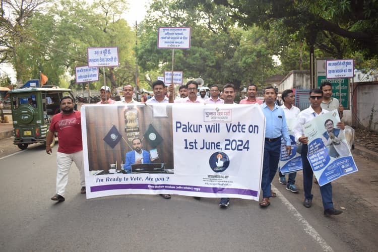 पाकुड़ नगर. शहर में शिक्षकों द्वारा बुधवार को मतदाताओं को मतदान के लिए जागरूक करने के उद्देश्य से जागरूकता रैली निकाली गयी. इस अवसर पर शिक्षक उपायुक्त आवास के समीप से रवींद्र चौक, इंदिरा गांधी चौक से होते हुए नगर थाना तक रैली निकालकर मतदाताओं को जागरूक किया. इस रैली में प्राथमिक से लेकर प्लस-टू तक के सरकारी शिक्षकों एवं सहायक अध्यापकों ने भाग लिया. मतदाता जागरूकता रैली में ध्वनि विस्तारक यंत्र के माध्यम से लोगों को बढ़-चढ़कर मतदान में भाग लेने की अपील की गयी. वहीं उपायुक्त द्वारा प्रेषित आमंत्रण पत्र का भी वितरण किया गया. रैली संयोजक सह एएलएमटी दिलीप कुमार राय ने बताया कि हम सभी का लक्ष्य है कि मतदान का प्रतिशत बढ़े. पूरे राज्य में पाकुड़ जिला मतदान प्रतिशत में सबसे आगे रहे. मौके पर संयोजक दिलीप कुमार राय, बद्री रविदास, विजय कुमार भंडारी, सुनील मंडल, कपूर महतो, विजय नंदन त्रिवेदी, रियाजुद्दीन अंसारी, अविनाश पंडित, रोहित मंडल, मनोज मंडल, जितेन्द्र सिंह, रतन कुमार, चन्द्रशेखर मंडल, दीपक प्रसाद, प्रेमचंद महतो, पूर्णचंद्र मंडल समेत अन्य शामिल थे.