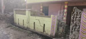 हाइवा के धक्के से मकान की चहारदीवारी क्षतिग्रस्त