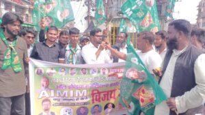 एआइएमआइएम जिलाध्यक्ष शमशाद आलम के नेतृत्व में गांधी चौक पर कार्यकर्ताओं ने जमकर जश्न मनाया.