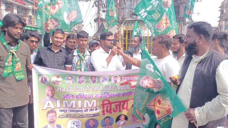 गांधी चौक पर जिलाध्यक्ष शमशाद आलम के नेतृत्व में बांटी गयी मिठाई प्रतिनिधि, पाकुड़बिहार विधानसभा चुनाव के नतीजों के बाद एआइएमआईएम समर्थकों में उत्साह का माहौल है. पार्टी की जीत पर जिले के एआइएमआइएम जिलाध्यक्ष शमशाद आलम के नेतृत्व में गांधी चौक पर कार्यकर्ताओं ने जमकर जश्न मनाया. कार्यकर्ताओं ने एक-दूसरे को मिठाई खिलाकर खुशी जाहिर की. पटाखे फोड़कर जीत का स्वागत किया. जिला अध्यक्ष शमशाद आलम ने कहा कि यह जीत जनता के भरोसे की जीत है. पार्टी आने वाले दिनों में विकास और जनहित के मुद्दों पर मजबूती से काम करेगी. गांधी चौक पर जुटे लोगों ने नारेबाजी करते हुए पार्टी प्रत्याशियों को बधाई दी. भविष्य में बेहतर काम की उम्मीद जतायी. मौके पार्टी कार्यकर्ता पर इसाक शेख, तस्लीम आरिफ, हसन शेख, मो राज, मुकद्द आलम, मो महबूब आलम मौजूद थे.