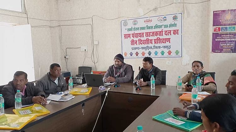 पाकुड़िया. प्रखंड सभागार में सबकी योजना सबका विकास के तहत सहजकर्ता दल के सदस्यों का तीन दिवसीय प्रशिक्षण सोमवार से प्रारंभ हुआ. द्वितीय चरण के प्रशिक्षण में पाकुड़िया, तेतुलिया, लागडुम, बीचपहाड़ी, पालियादाहा, बसंतपुर, बन्नोंग्राम, डोमनगड़िया, खक्सा, फुलझिंझरी, गणपुरा, बडासिंहपुर पंचायत के 72 सहजकर्ता दल के सदस्यों ने भाग लिया. प्रशिक्षण मास्टर ट्रेनर सह मुखिया सालोमी बेसरा, मुखिया सरिता मरांडी, सायेम अख्तर, संजय मुर्मू ने दिया.