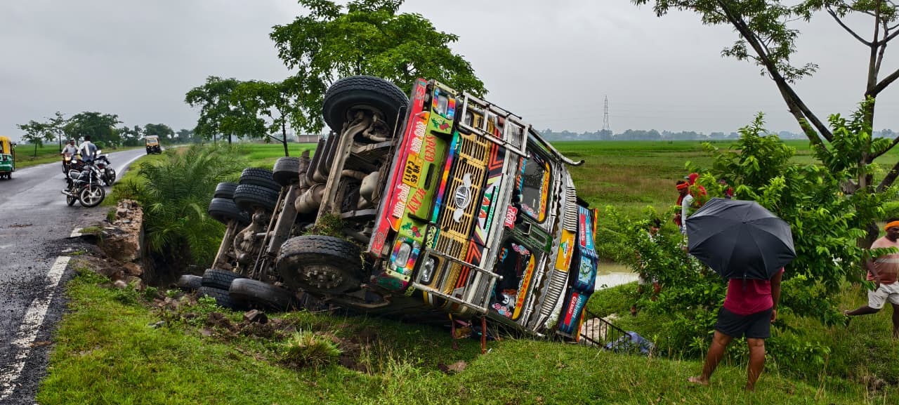 हिरणपुर. हिरणपुर-बरहरवा मुख्य सड़क बिरग्राम के निकट सोमवार की देर रात बालू लोड ट्रक असंतुलित होकर पलट गया. इस दुर्घटना में चालक एवं खलासी बाल-बाल बच गए. जानकारी के अनुसार, ट्रक संख्या डब्ल्यूबी-65सी/4811 राजमहल से गंगा का बालू लोड कर कोलकाता पाइप फैक्ट्री जा रहा था. इसी दौरान विपरीत दिशा से ट्रेलर सामने आने से चालक का संतुलन बिगड़ गया. इस कारण ट्रक पुलिया का रेलिंग तोड़ते हुए करीब 10 फीट नीचे पुल पर पलट गया. इसकी सूचना मिलते ही पुलिस पहुंचकर घटना की जानकारी ली. इस बाबत थाना प्रभारी रंजन कुमार सिंह ने बताया कि घटना की जानकारी मिली है. जांचोपरांत आवश्यक कार्रवाई की जायेगी.