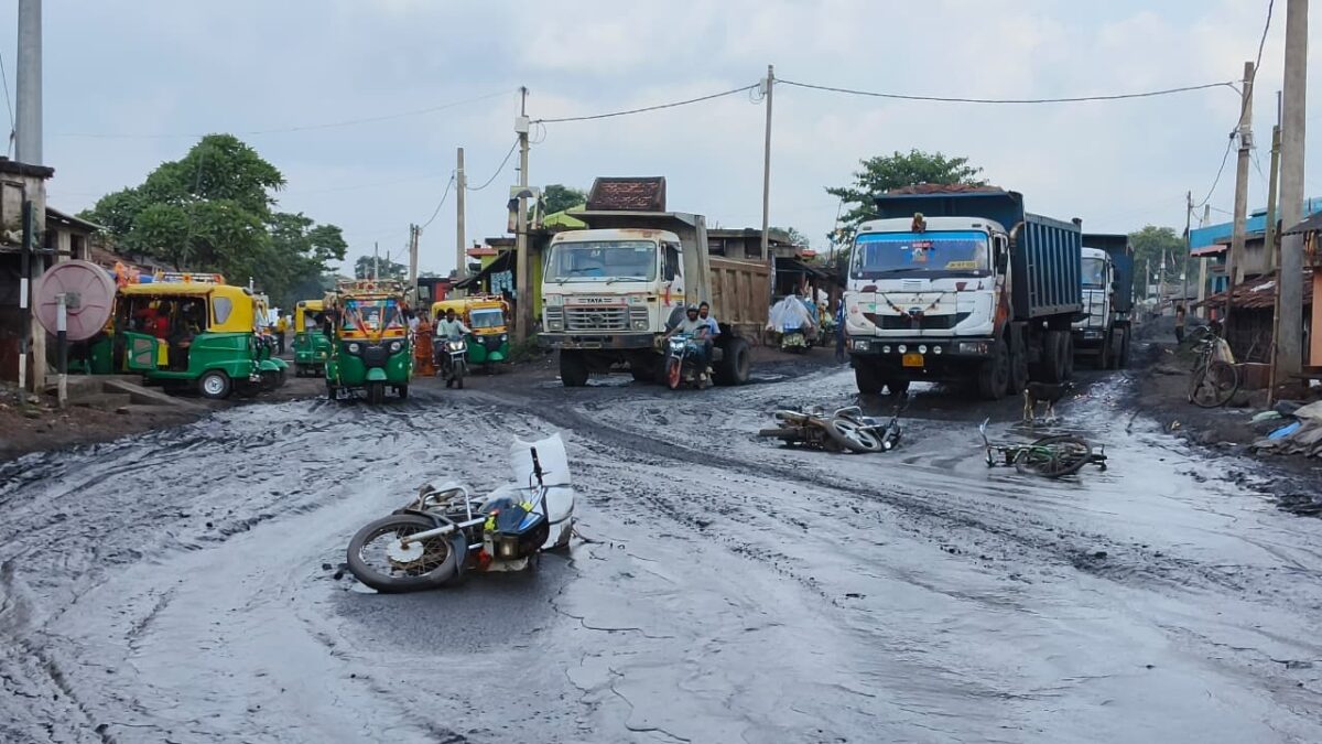 महेशपुर. महेशपुर. अमड़ापाड़ा कोल माइंस मुख्य सड़क बदहाल स्थिति में हैं.