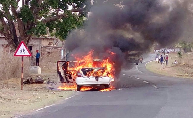मेदिनीनगर : थोड़ी-सी भी चूक हो जाती, तो झारखंड के पलामू जिला में शनिवार की सुबह एक कार नवविवाहित जोड़ेकी चिता बन जाती. लेकिन, ड्राइवर ने सूझ-बूझ का परिचय दिया और इससे पहले कि कोई अनहोनी होती दूल्हा और दुल्हन को सुरक्षित कार से बाहर निकाल लिया. थोड़ी ही देर में कार आग की लपटों में घिर गया और देखते ही देखते जलकर राख हो गया.