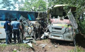 लातेहार : रांची-मेदिनीनगर राष्ट्रीय उच्च पथ (एनएच 39) पर मनिका थाना क्षेत्र के कुई ग्राम के पास दो यात्री बसों की सीधी टक्कर में दो लोगों की मौत हो गयी और तकरीबन 40 यात्री घायल हो गये. घायलों में तीन की हालत नाजुक है. मेदिनीनगर से रांची जा रही झारखंड द्रुतगामी एसी बस और हजारीबाग से रांची जा रही बस के बीच में सीधी टक्कर हुई है.