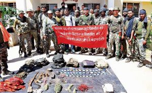 देसी राइफल – 2, प्रेशर कुकर बम – 2 (पांच-पांच किलो का), इलेक्ट्रोनिक डेटोनेटर – 4, हैंड ग्रेनेड – 2, इलेक्ट्रोनिक तार – 200 मीटर, वैसेलिन 50 पीस, कैमरा फ्लैश- 1, बैनर – 5, पिट्ठु बैग – 5,वर्दी – 10, टिफिन – 1