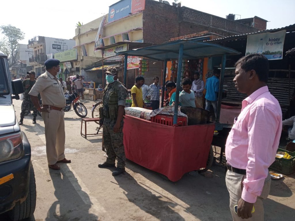 पलामू के हुसैनाबाद में बीडीओ और थाना प्रभारी ने लॉकडाउन का सख्ती से कराया पालन
