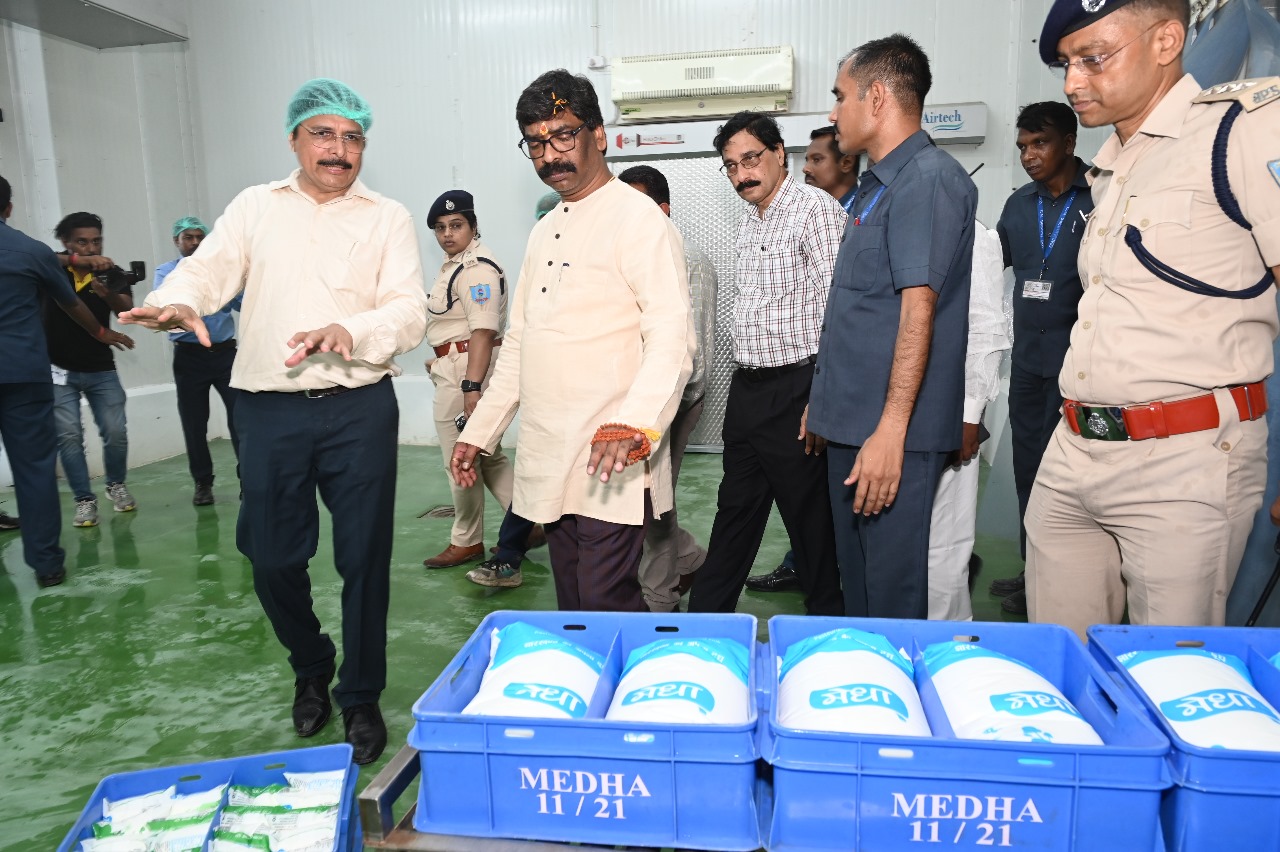 पलामू जिले के मेदिनीनगर सदर प्रखंड के चियांकी स्थित गणके में बुधवार (4 अक्टूबर) को 28 करोड़ की लागत से निर्मित मेधा डेयरी प्लांट का मुख्यमंत्री हेमंत सोरेन ने उदघाटन किया. मौके पर श्री सोरेन ने कहा कि किसानों को आर्थिक रूप से मजबूत बनाने के लिए प्रयासरत हैं. किसान- पशुपालकों को सशक्त और आत्मनिर्भर बनाने की दिशा में सरकार तेजी से काम कर रही है. यह डेयरी प्लांट यहां के किसानों – पशुपालकों के जीवन में बदलाव लाने में मील का पत्थर साबित होगा. किसान अपने पैरों पर खड़े हो व इनकी आमदनी में बढोतरी हो, इसके लिए सरकार ने कई योजनाएं चला रही है. सीएम हेमंत सोरेन ने कहा कि योजनाओं से जुड़ कर किसान व पशुपालक इसका लाभ उठायें. सरकार के साथ कदम बढ़ाये और सहयोग करें. पलामू में जलवायु परिवर्तन होने से किसान प्रभावित हुए है. वैकल्पिक खेती और इससे जुड़े अन्य कार्यों की दिशा में आगे आगे आना होगा. सीएम ने कहा कि झारखंड जैसे राज्य में किसानों के लिए पशुपालन काफी लाभप्रद है. ऐसे में किसानों को पशुधन से समृद्ध करने के लिए सरकार ने मुख्यमंत्री पशुधन योजना शुरू की है. इसके तहत 90 प्रतिशत सब्सिडी पर किसानों- पशुपालकों को पशु दिये जा रहे हैं. किसानों को पशुपालन से जोड़कर उनकी आय को बढ़ाना है.