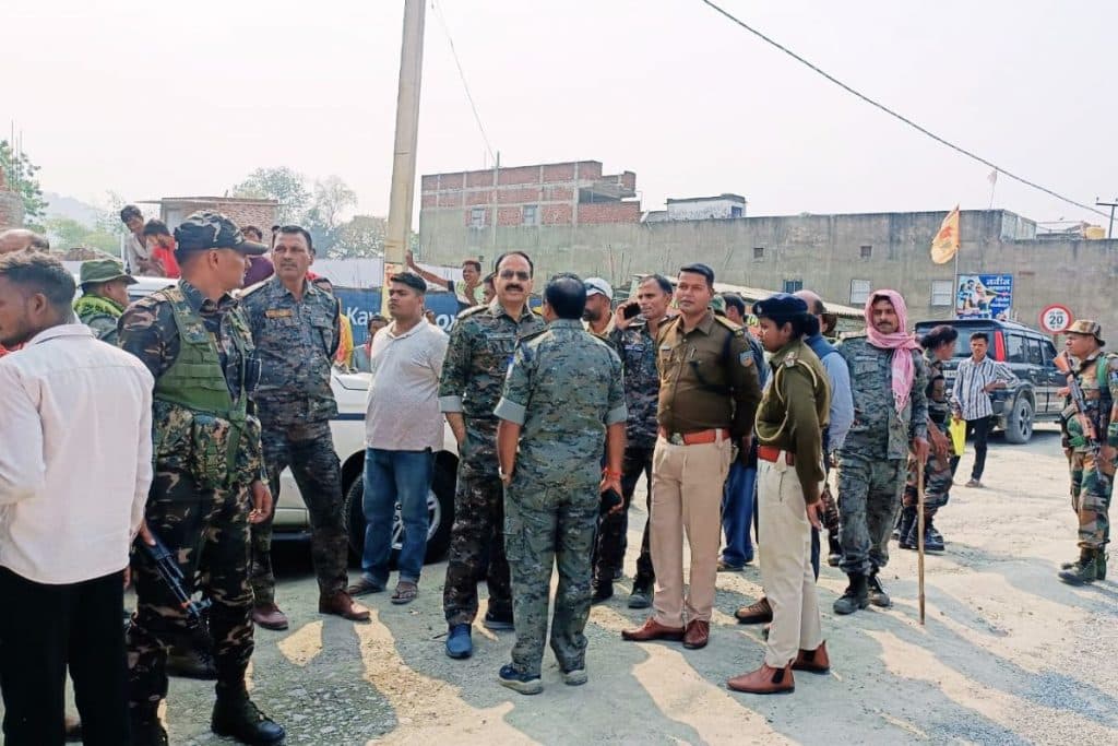 ग्रामीणों के साथ वार्ता कर रहे पुलिस और प्रशासनिक पदाधिकारी