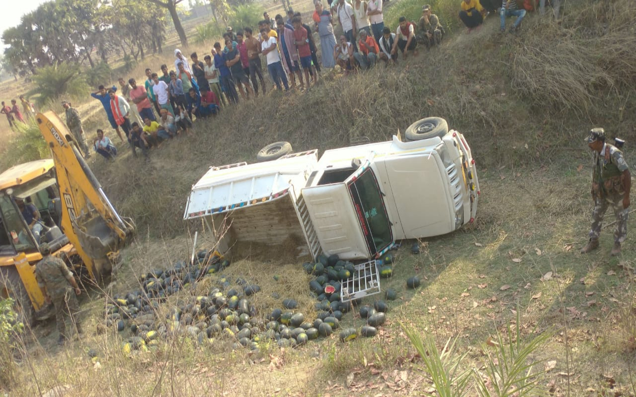 पलामू जिले के हरिहरगंज थाना क्षेत्र के सरसोत लुकुवा गांव के पास नहर में मंगलवार की सुबह तरबूज से भरी पिकअप वैन अनियंत्रित होकर नहर में पलट गयी. हादसे में पिकअप चालक छत्तीसगढ़ के बलरामपुर जिला अंतर्गत सुलसूली गांव निवासी सुधन अगरिया के 21 वर्षीय पुत्र दिपलेश अगरिया की घटनास्थल पर ही मौत हो गयी. जबकि सहचालक 22 वर्षीय रंजीत अगरिया बाल-बाल बच गया.