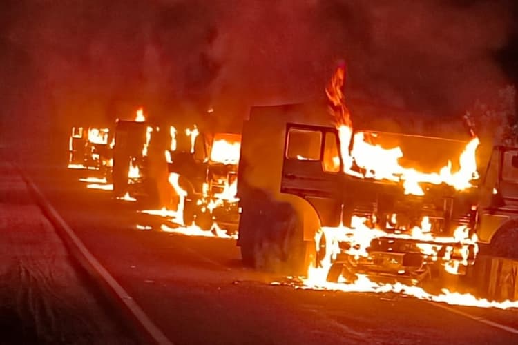 इस सड़क हादसे के बाद स्थानीय ग्रामीणों ने सात हाइवा को आग के हवाले कर दिया. सभी वाहन धू-धू कर जलने लगे. घटना की सूचना मिलने के बाद चैनपुर थाना की पुलिस मौके पर पहुंची और घटनास्थल पर पहुंच कर स्थिति को संभालने का प्रयास कर रही है.