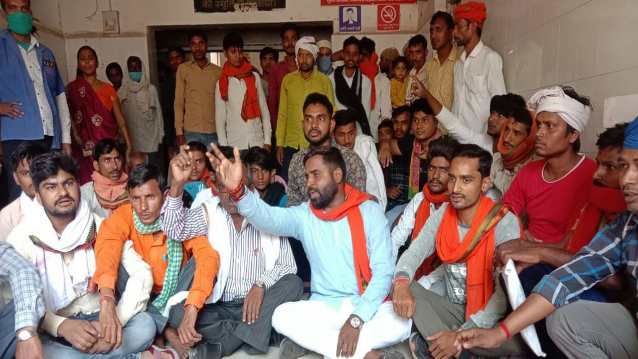 परिजनों का अस्पताल परिसर में धरना प्रदर्शन