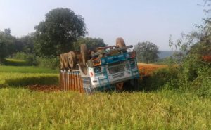 गुमला जा रहा ट्रक रामगढ़ में दुर्घटनाग्रस्त, धान के खेत में पलटा