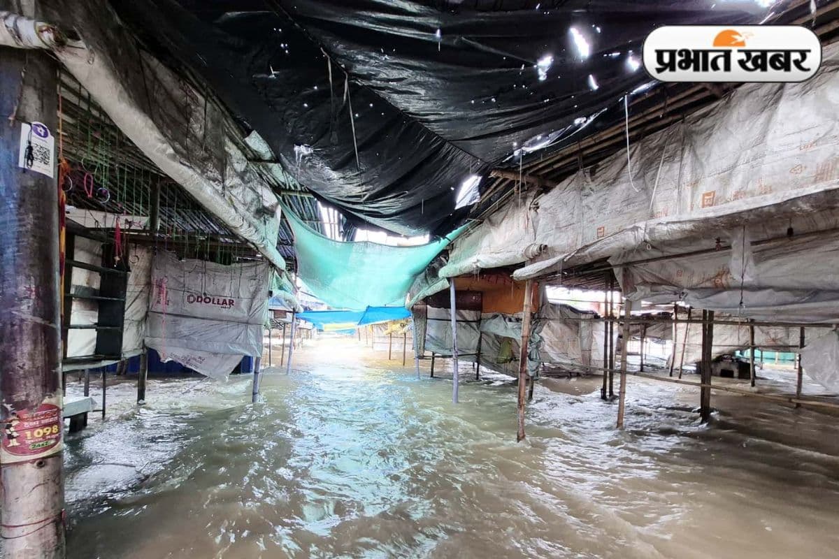भैरवी नदी किनारे सैकड़ों दुकानें जलमग्न हो गयीं हैं. हालांकि, बुधवार से ही दुकानदार सामान समेटने लगे थे. इसके बावजूद मुकेश यादव, लुटू यादव, रघुनंदन यादव, रूपेश यादव, मनोज चटर्जी, नीरज साव, धीरज साव, ननकू अग्रवाल, श्रवण सिंह, चरका महतो, मनोज बेदिया, तालो अग्रवाल, विश्वनाथ यादव, इंदर यादव, चंद्रमोहन यादव, दिलीप कपूर, पप्पू खन्ना, बंशी केवट, चंदन केवट, परिमल कुशवाहा सहित सैकड़ों लोगों की मनिहारी, होटल और फूल-प्रसाद की दुकानों में पानी घुस गया है.