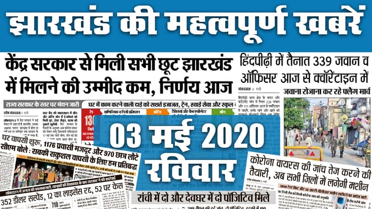 watch 03 May 2020 Important news of Jharkhand Ranchi Hindpiri Bero Garhwa Jamshedpur Dhanbad deograh Bokaro झारखंड के चार प्रमुख शहर रांची, जमशेदपुर, धनबाद और देवघर के आसपास की महत्वपूर्ण खबरें रोज सुबह यहां देखें.