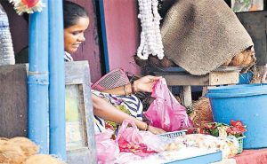 सब्जी मंडी, फल मंडी और राशन दुकानों आदि में तो पॉलिथीन का उपयोग आम बात है. लेकिन, इसका उपयोग मंदिरों में भी धड़ल्ले से हो रहा है. ‘प्रभात खबर’ की टीम ने बुधवार को शहर के पहाड़ी मंदिर समेत अन्य मंदिरों का जायजा लिया. इस दौरान यह पाया गया कि मंदिर और आसपास की दुकानों में पूजा की जो भी सामग्री श्रद्धालु खरीदते हैं, वह उन्हें पॉलिथीन में ही दी जाती है. इसके लिए सीधे तौर पर दुकानदार और खरीदार दोनों ही जिम्मेदार हैं.