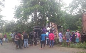 बुंडू में भयानक हादसा, कोयला लदा ट्रक सड़क किनारे पलटा