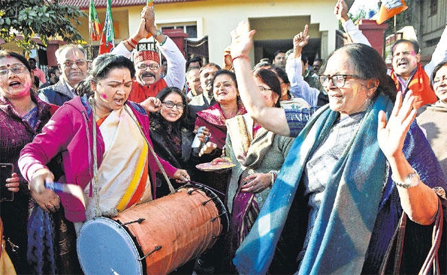 प्रदेश उपाध्यक्ष प्रो आदित्य साहू ने कहा कि अब गुजरात व हिमाचल प्रदेश के साथ भाजपा अपने सहयोगियों को मिला कर 19 राज्यों में सत्ता में होगी. यह भाजपा की बढ़ती लोकप्रियता को दर्शाता है. प्रदेश महामंत्री दीपक प्रकाश ने कहा कि कांग्रेस के घिनौने प्रचार और सस्ती लोकप्रियता की बातों को जनता ने नकार दिया. जीत पर प्रधानमंत्री नरेंद्र मोदी व राष्ट्रीय अध्यक्ष अमित शाह को बधाई देने वालों में प्रदेश उपाध्यक्ष हेमलाल मुर्मू, विद्युत वरण महतो, समीर उरांव, ऊषा पांडेय, प्रिया सिंह, प्रदीप कुमार वर्मा, सुनील कुमार सिंह, अनंत ओझा, नवीन जायसवाल, सुबोध कुमार सिंह गुड्डू, मनोज सिंह, नूतन तिवारी, सरिता श्रीवास्तव, महेश पोद्दार, गणेश मिश्र, हेमंत दास, जेबी तुबीद, राजेश कुमार शुक्ल, प्रतुल नाथ शाहदेव, दीनदयाल बर्णवाल, प्रवीण प्रभाकर, शिवपूजन पाठक, संजय जायसवाल, सतीश सिन्हा, ज्योतिरीश्वर सिंह, आरती सिंह, राम कुमार पाहन, नीरज पासवान, सोना खान, अमरदीप यादव, मनोज मिश्रा, सत्यनारायण सिंह, केके गुप्ता, मुकेश सिंह, ब्रजमोहन राम, जवाहर पासवान, रविनाथ किशोर, काजल प्रधान, गुना महतो, स्वामी देवेंद्र प्रकाश, अशोक बड़ाईक, अशेष बारला, सुमन कच्छप, जोगेंद्र लाल, रमेश राम, किशुन दास, धर्मेंद्र कुमार, सुरेंद्र नाथ, सुरेंद्र पासवान, अर्जुन चौधरी आदि शामिल हैं.