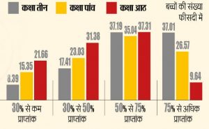 यह सिर्फ रांची की ही बात नहीं, बल्कि राज्य के अधिकतर जिलों के बच्चों का प्रदर्शन इसी प्रकार रहा. साइंस का रिजल्ट भी गणित की तरह रहा. कक्षा तीन में साइंस में 41.75 फीसदी बच्चों को 75 प्रतिशत से अधिक अंक मिले थे. पर कक्षा पांच में 32.97 और कक्षा आठ में मात्र 14.25 फीसदी बच्चों को ही साइंस में 75 प्रतिशत से अधिक अंक मिले.