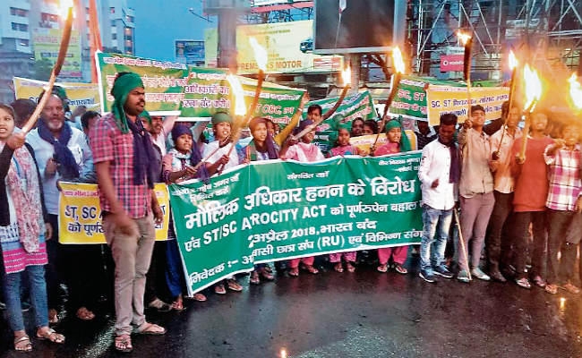 रांची : आदिवासी छात्र संघ रांची विश्वविद्यालय समिति व अन्य संगठनों ने दो अप्रैल भारत बंद को लेकर रांची विश्वविद्यालय परिसर से अलबर्ट एक्का चौक तक मशाल जुलूस निकाला़ एसीएस विवि समिति के अध्यक्ष संजय महली व अन्य ने कहा कि आरएसएस व बीजेपी सरकार द्वारा एसटी, एससी व ओबीसी के संविधान प्रदत्त संवैधानिक अधिकारों को समाप्त करने और मनुस्मृति लागू करने की साजिश की जा रही है़