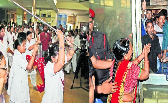 मरीज की मौत पर परिजनों ने नर्स को पीटा, विरोध में लाठी-डंडा लेकर कराया स्वास्थ्य सेवा ठप