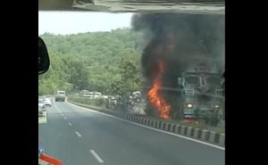 Video : रांची-पटना NH-33 पर तीन वाहनों की टक्कर, ट्रक में लगी भीषण आग